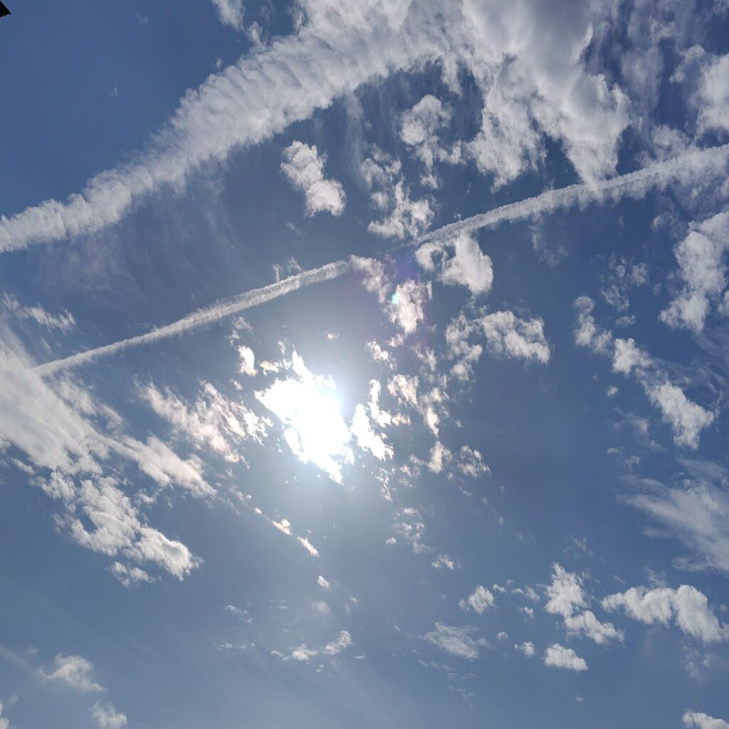飛行機雲が綺麗に線を描いていたので写真を📳☁️