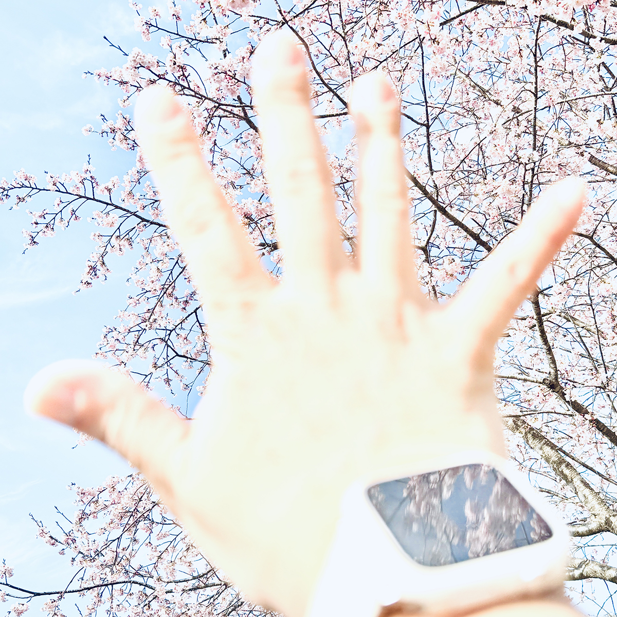 2026年 3月14日 某所 桜の木の下で『 空と桜と手のひらと 』
