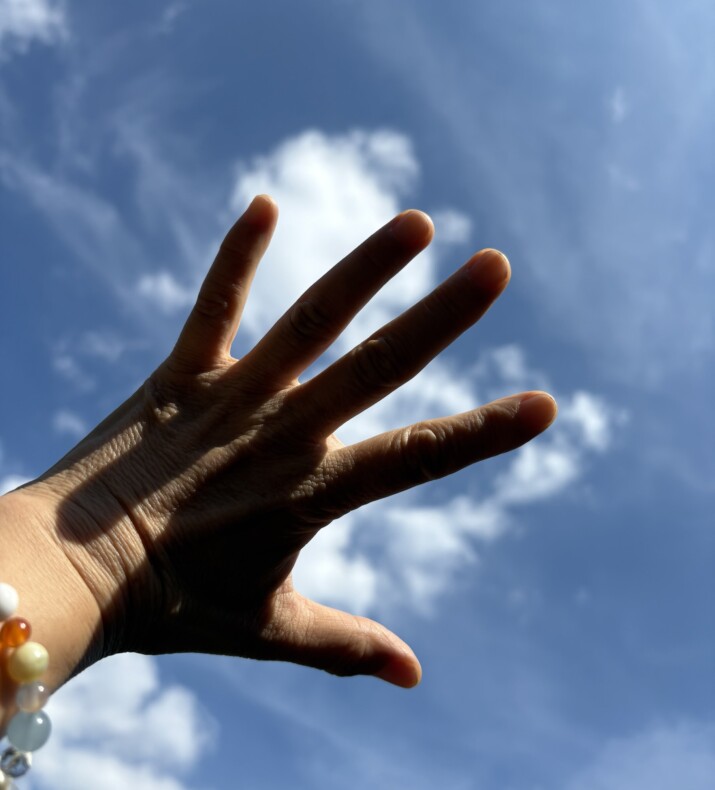8月 青い空に 手のひら 伸ばしてみた 何かが掴めそうな気がした いや… きっと 掴んだと思う この手の中に。 もうワクワクしかない 青空 ありがとう