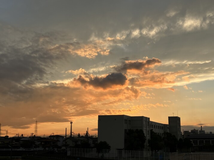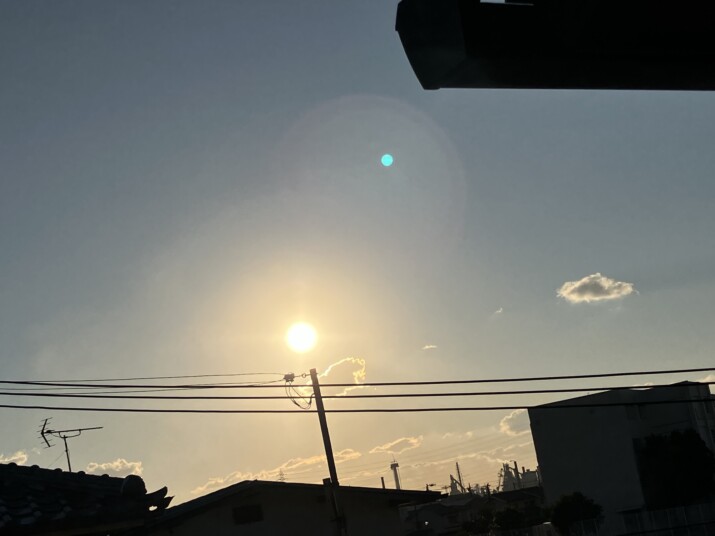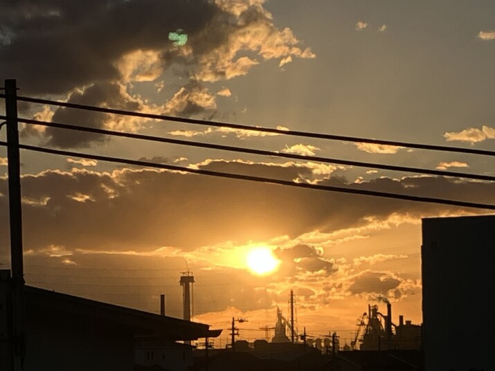 ふと外を見たら、こんな綺麗な夕日だった 毎日バタバタしてて…こんな夕日を見たら 心が洗われるね。