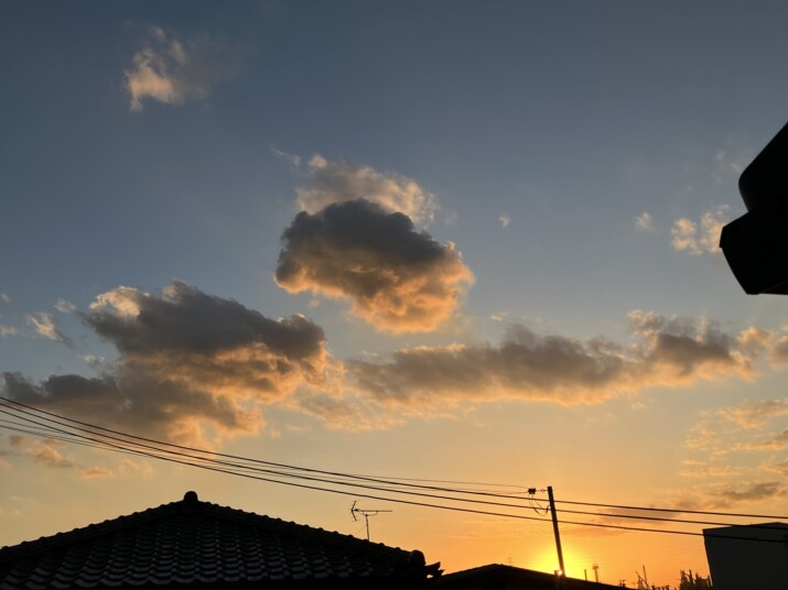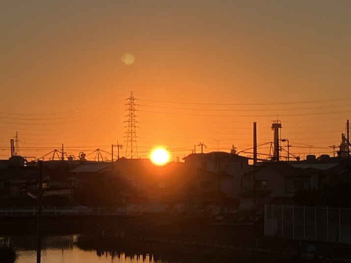 今日の夕日… まん丸で…オレンジ色で… 感動したよ あ〜〜、あなたに会いたい。
